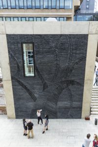 As part of the development of the David Attenborough Building itself, Ackroyd and Harvey were awarded a major public art commission in response to the redevelopment of this iconic brutalist building, originally designed by Arup Associates in the 1960’s. The work is one of two large-scale exterior works composed of intensively layered slate.
